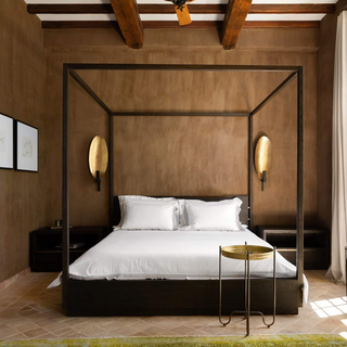 A mas usually has a broad trellis decked with a mix of vine and wisteria attached to its south wall to protect the entrance and provide summer shade, decked with a mix of vine and wisteria, built near a spring, usually in a hollow.